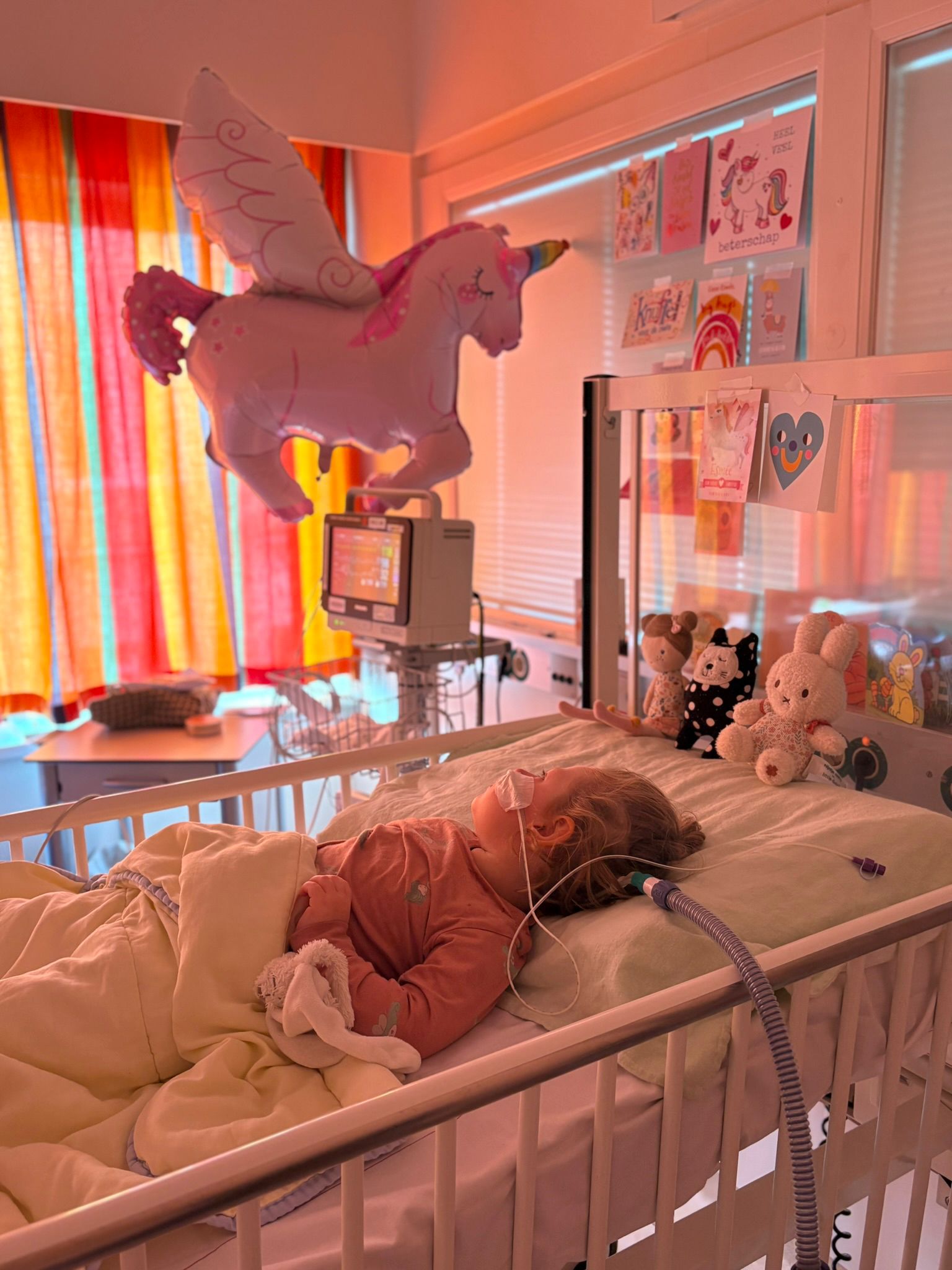 Helaas volgen na hoge pieken soms ook diepe dalen: eind mei kwam Esmée weer in het ziekenhuis terecht. Ze had een virus opgepikt en moest hard werken om beter te worden. Daarom werd ervoor gekozen om haar op te nemen in Groningen en de situatie verslechterde zodanig dat ze op de intensive care terecht kwam. Pas na twee weken in het ziekenhuis kwam er een voorzichtige verbetering en na bijna drie weken van huis te zijn geweest, mocht het gezin gelukkig weer thuiskomen bij broertje Melle, die al die tijd bij opa en oma Bonnema logeerde. Thuis bijkomen na een angstige tijd blijkt altijd het beste medicijn en Esmée ging gelukkig snel weer de goede kant op.