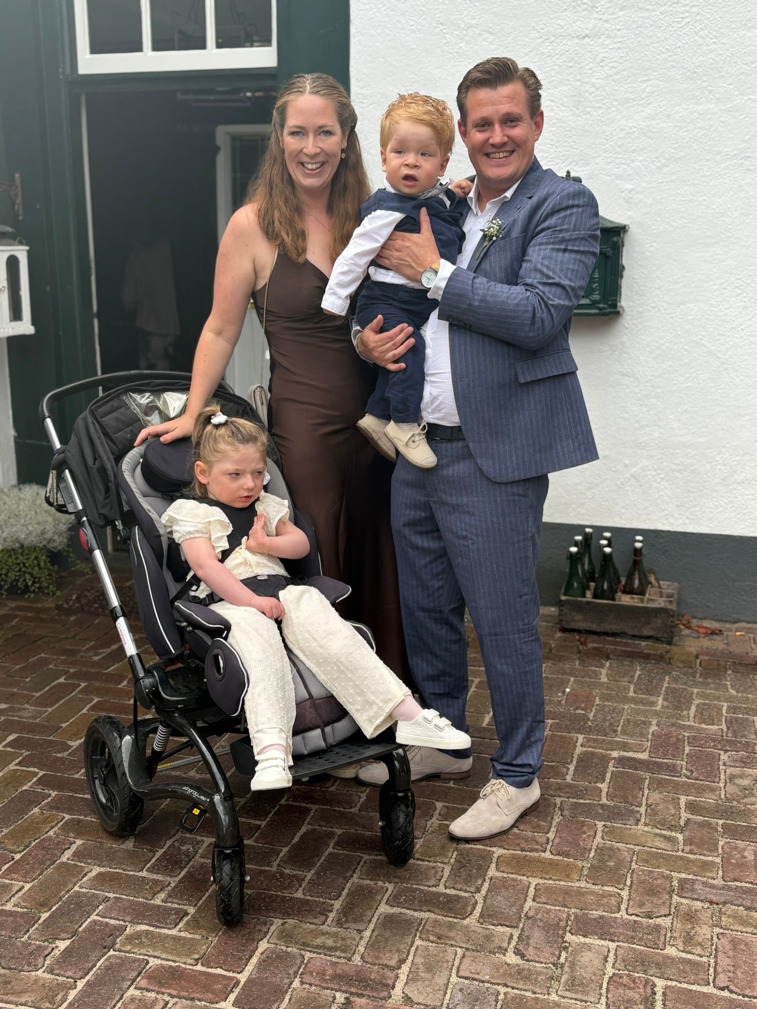Begin september trouwde de zus van Hans en natuurlijk was het hele gezin uitgenodigd. Om hen ook wat rustmomentjes tussen de festiviteiten door te gunnen hebben we hen twee overnachtingen in een nabijgelegen recreatiepark aangeboden. Dit leek ons een passendere oplossing dan logeren bij familie, helemaal nu Esmée haar vele hulpmiddelen een aanzienlijke ruimte beginnen in te nemen. Al deze spullen moesten worden meegenomen, maar ook nu bood de rolstoelbus, die deze maand alweer een jaar in gebruik is, uitkomst!